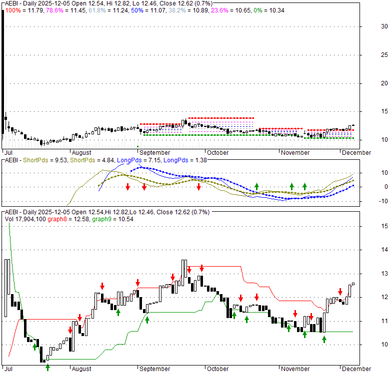 Price has closed above its short-term moving average. Short-term moving average is currently above mid-term; and above long-term moving average. From the relationship between price and moving averages: This stock is BULLISH in short-term; and NEUTRAL in mid-long term.[ AEBI ] has closed below upper band by 9.0%. Bollinger Bands are 0% narrower than normal.