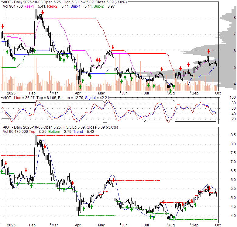Price has closed below its short-term moving average. Short-term moving average is currently above mid-term; and above long-term moving average. From the relationship between price and moving averages: This stock is NEUTRAL in short-term; and BULLISH in mid-long term.[ AIOT ] has closed above bottom band by 5.4%. Bollinger Bands are 55.1% narrower than normal. The narrow width of the bands suggests low volatility as compared to its normal range. The bands have been in this narrow range for 4 bars. This is a sign that the market may be about to initiate a new trend.