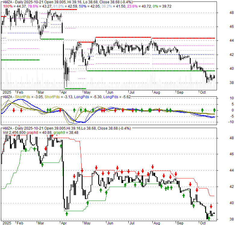 Price has closed above its short-term moving average. Short-term moving average is currently below mid-term; and below long-term moving average. From the relationship between price and moving averages: This stock is NEUTRAL in short-term; and BEARISH in mid-long term.[ AMZA ] has closed above bottom band by 37.4%. Bollinger Bands are 20.7% wider than normal. The current width of the bands does not suggest anything about the future direction or movement of prices.