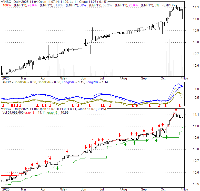 Price has closed below its short-term moving average. Short-term moving average is currently above mid-term; and above long-term moving average. From the relationship between price and moving averages: This stock is NEUTRAL in short-term; and BULLISH in mid-long term.[ ANSC ] has closed above bottom band by 29.8%. Bollinger Bands are 5% narrower than normal. The current width of the bands does not suggest anything about the future direction or movement of prices.
