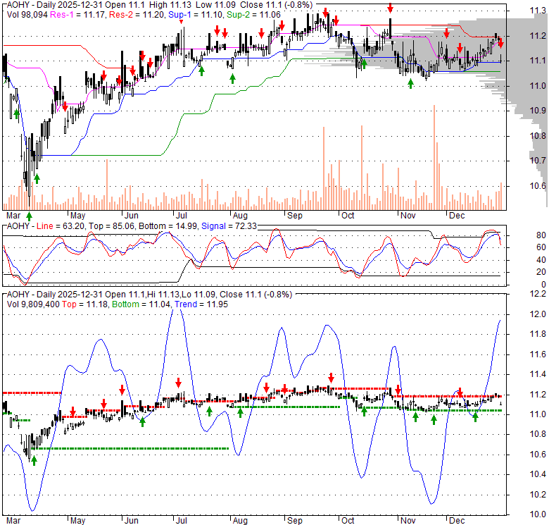 Price has closed below its short-term moving average. Short-term moving average is currently above mid-term; and above long-term moving average. From the relationship between price and moving averages: This stock is NEUTRAL in short-term; and NEUTRAL in mid-long term.[ AOHY ] has closed above bottom band by 26.6%. Bollinger Bands are 17% wider than normal. The current width of the bands does not suggest anything about the future direction or movement of prices.