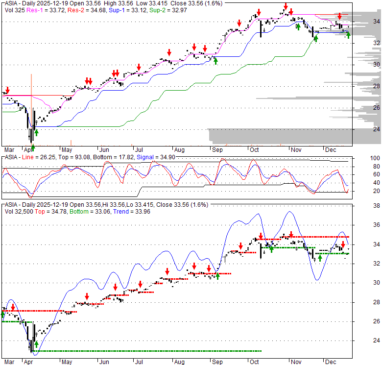 Price has closed above its short-term moving average. Short-term moving average is currently below mid-term; and above long-term moving average. From the relationship between price and moving averages: This stock is NEUTRAL in short-term; and NEUTRAL in mid-long term.[ ASIA ] has closed below upper band by 40.8%. Bollinger Bands are 27.5% narrower than normal. The current width of the bands does not suggest anything about the future direction or movement of prices.