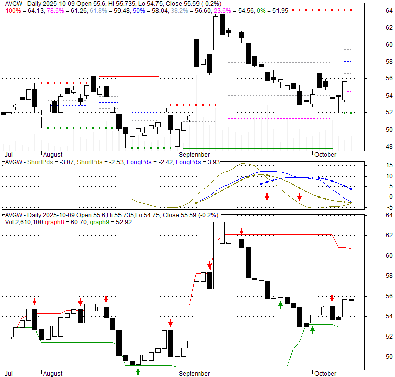 Price has closed above its short-term moving average. Short-term moving average is currently above mid-term; and below long-term moving average. From the relationship between price and moving averages: This stock is BULLISH in short-term; and NEUTRAL in mid-long term.[ AVGW ] has closed below upper band by 47.2%. Bollinger Bands are 0% narrower than normal.