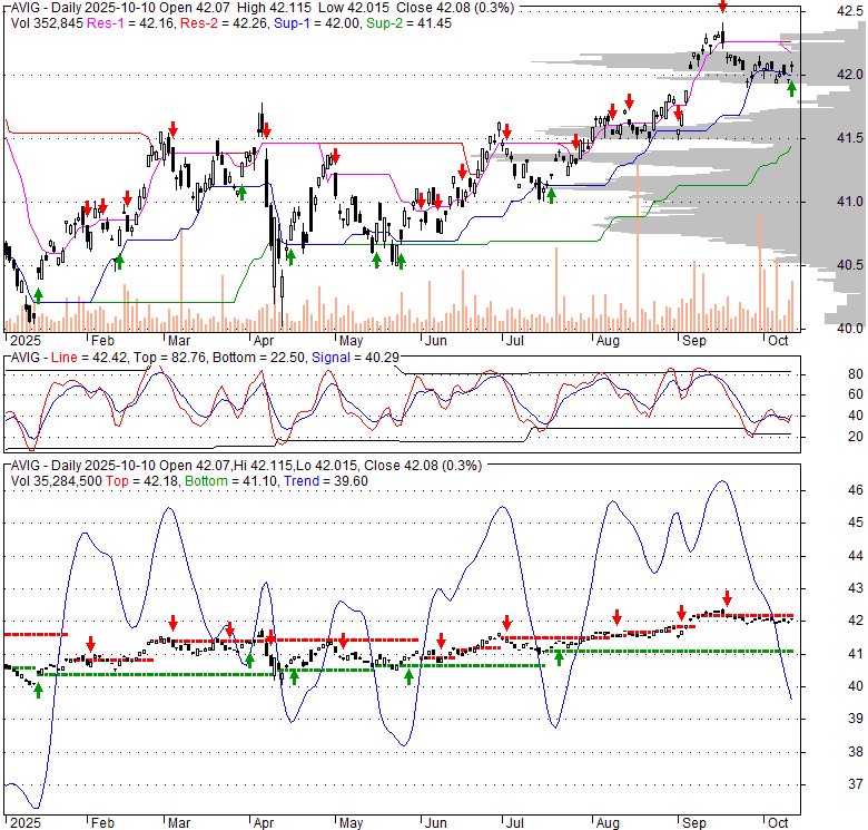 Price has closed above its short-term moving average. Short-term moving average is currently above mid-term; and above long-term moving average. From the relationship between price and moving averages: This stock is BULLISH in short-term; and BULLISH in mid-long term.[ AVIG ] has closed below upper band by 29.2%. Bollinger Bands are 63.2% narrower than normal. The narrow width of the bands suggests low volatility as compared to its normal range. The bands have been in this narrow range for 3 bars. This is a sign that the market may be about to initiate a new trend.