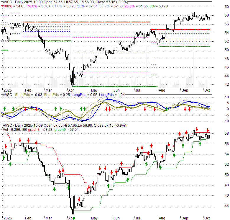 Price has closed below its short-term moving average. Short-term moving average is currently above mid-term; and above long-term moving average. From the relationship between price and moving averages: This stock is NEUTRAL in short-term; and BULLISH in mid-long term.[ AVSC ] has closed above bottom band by 18.3%. Bollinger Bands are 64.2% narrower than normal. The narrow width of the bands suggests low volatility as compared to its normal range. The bands have been in this narrow range for 19 bars. This is a sign that the market may be about to initiate a new trend.