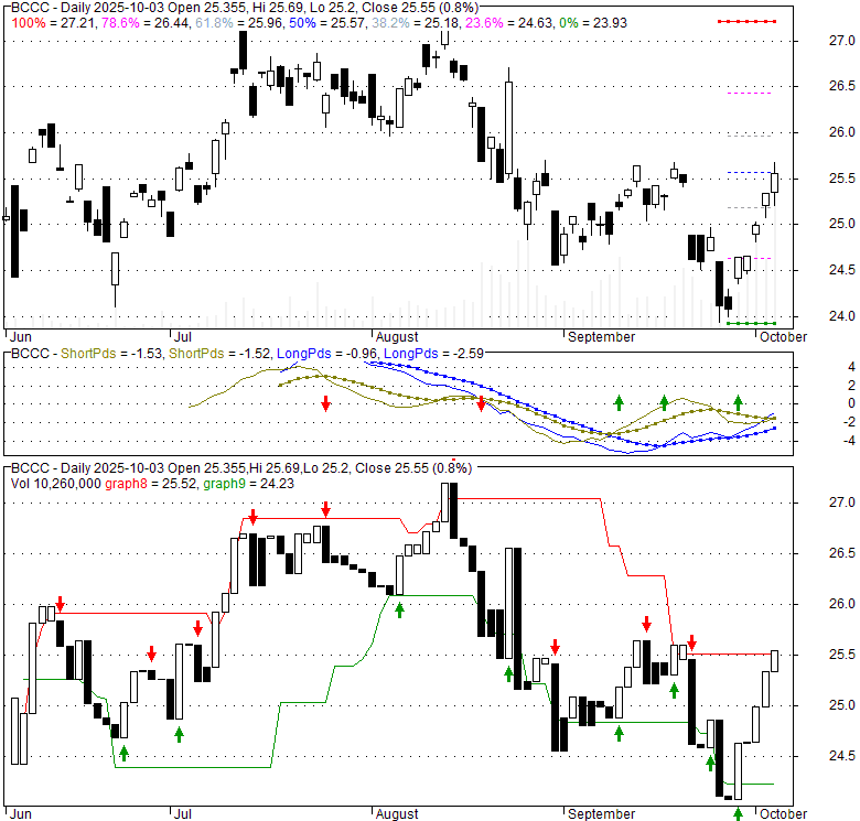 Price has closed above its short-term moving average. Short-term moving average is currently below mid-term; and below long-term moving average. From the relationship between price and moving averages: This stock is NEUTRAL in short-term; and NEUTRAL in mid-long term.[ BCCC ] has closed below upper band by 19.7%. Bollinger Bands are 0% narrower than normal.