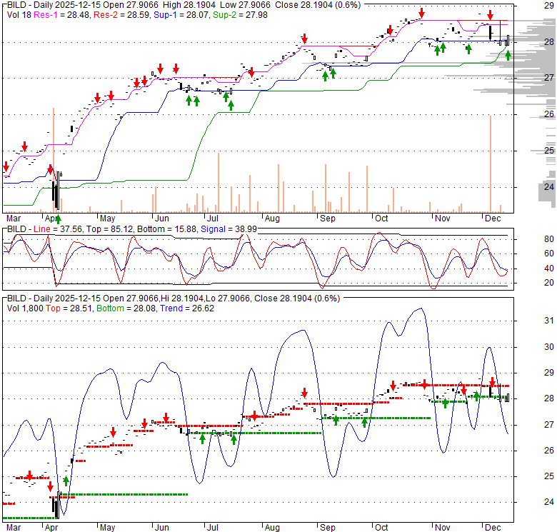 Price has closed above its short-term moving average. Short-term moving average is currently below mid-term; and above long-term moving average. From the relationship between price and moving averages: This stock is NEUTRAL in short-term; and NEUTRAL in mid-long term.[ BILD ] has closed above bottom band by 43.2%. Bollinger Bands are 1.2% wider than normal. The current width of the bands does not suggest anything about the future direction or movement of prices.