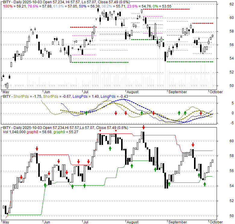 Price has closed above its short-term moving average. Short-term moving average is currently below mid-term; and below long-term moving average. From the relationship between price and moving averages: This stock is NEUTRAL in short-term; and NEUTRAL in mid-long term.[ BITY ] has closed below upper band by 37.1%. Bollinger Bands are 0% narrower than normal.