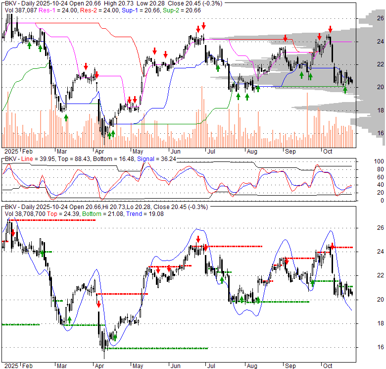 Price has closed below its short-term moving average. Short-term moving average is currently below mid-term; and below long-term moving average. From the relationship between price and moving averages: This stock is BEARISH in short-term; and NEUTRAL in mid-long term.[ BKV ] has closed above bottom band by 31.3%. Bollinger Bands are 74.5% wider than normal. The large width of the bands suggest high volatility as compared to its normal range. The bands have been in this wide range for 9 days. This is a sign that the current trend might continue.