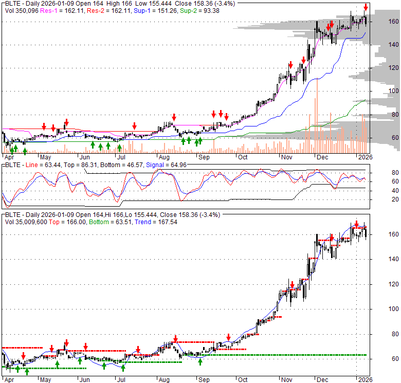 Price has closed below its short-term moving average. Short-term moving average is currently above mid-term; and above long-term moving average. From the relationship between price and moving averages: This stock is NEUTRAL in short-term; and BULLISH in mid-long term.[ BLTE ] has closed above bottom band by 46.9%. Bollinger Bands are 35.4% narrower than normal. The current width of the bands does not suggest anything about the future direction or movement of prices.