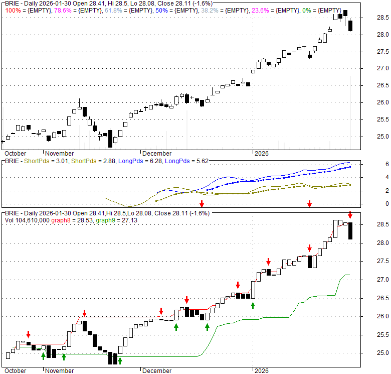 Price has closed below its short-term moving average. Short-term moving average is currently above mid-term; and below long-term moving average. From the relationship between price and moving averages: This stock is NEUTRAL in short-term; and NEUTRAL in mid-long term.[ BRIE ] has closed below upper band by 35.2%. Bollinger Bands are 0% narrower than normal.