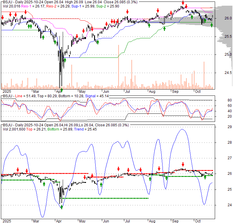 Price has closed above its short-term moving average. Short-term moving average is currently below mid-term; and below long-term moving average. From the relationship between price and moving averages: This stock is NEUTRAL in short-term; and NEUTRAL in mid-long term.[ BSJU ] has closed below upper band by 30.1%. Bollinger Bands are 0.8% wider than normal. The current width of the bands does not suggest anything about the future direction or movement of prices.