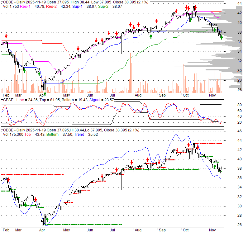 Price has closed above its short-term moving average. Short-term moving average is currently below mid-term; and below long-term moving average. From the relationship between price and moving averages: This stock is NEUTRAL in short-term; and NEUTRAL in mid-long term.[ CBSE ] has closed above bottom band by 30.8%. Bollinger Bands are 58.4% wider than normal. The large width of the bands suggest high volatility as compared to its normal range. The bands have been in this wide range for 3 days. This is a sign that the current trend might continue.