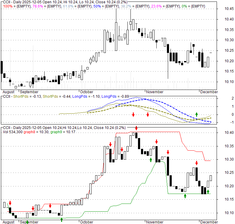 Price has closed above its short-term moving average. Short-term moving average is currently below mid-term; and below long-term moving average. From the relationship between price and moving averages: This stock is NEUTRAL in short-term; and NEUTRAL in mid-long term.[ CCII ] has closed below upper band by 23.2%. Bollinger Bands are 0% narrower than normal.