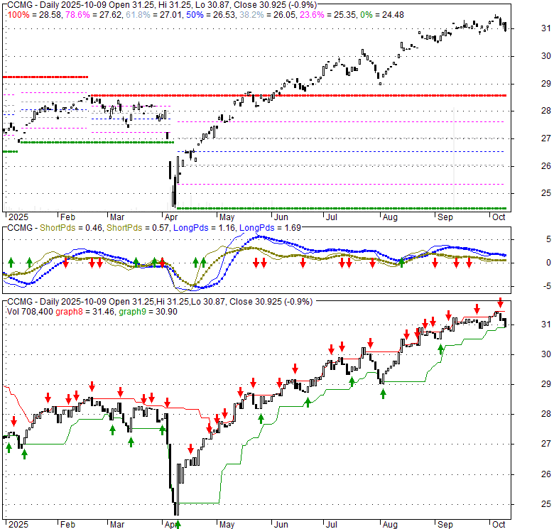 Price has closed below its short-term moving average. Short-term moving average is currently above mid-term; and above long-term moving average. From the relationship between price and moving averages: This stock is NEUTRAL in short-term; and BULLISH in mid-long term.[ CCMG ] has closed above bottom band by 11.1%. Bollinger Bands are 42.2% narrower than normal. The narrow width of the bands suggests low volatility as compared to its normal range. The bands have been in this narrow range for 11 bars. This is a sign that the market may be about to initiate a new trend.