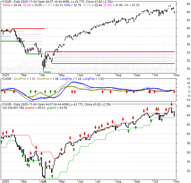 Price has closed below its short-term moving average. Short-term moving average is currently above mid-term; and above long-term moving average. From the relationship between price and moving averages: This stock is NEUTRAL in short-term; and BULLISH in mid-long term.[ CGGR ] has closed above bottom band by 16.3%. Bollinger Bands are 37.7% wider than normal. The current width of the bands does not suggest anything about the future direction or movement of prices.