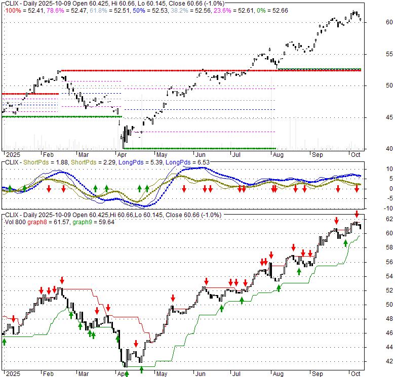 Price has closed below its short-term moving average. Short-term moving average is currently above mid-term; and above long-term moving average. From the relationship between price and moving averages: This stock is NEUTRAL in short-term; and BULLISH in mid-long term.[ CLIX ] has closed below upper band by 49.0%. Bollinger Bands are 23.8% narrower than normal. The current width of the bands does not suggest anything about the future direction or movement of prices.