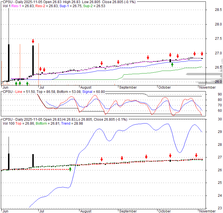 Price has closed below its short-term moving average. Short-term moving average is currently above mid-term; and above long-term moving average. From the relationship between price and moving averages: This stock is NEUTRAL in short-term; and BULLISH in mid-long term.[ CPSU ] has closed above bottom band by 46.7%. Bollinger Bands are 0% narrower than normal.