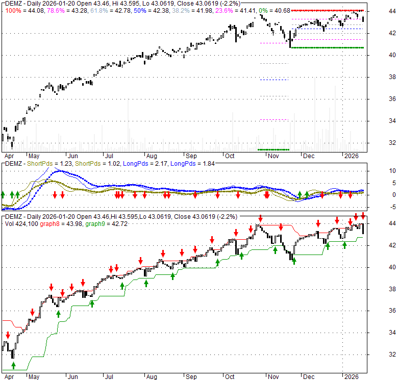 Price has closed below its short-term moving average. Short-term moving average is currently above mid-term; and above long-term moving average. From the relationship between price and moving averages: This stock is NEUTRAL in short-term; and BULLISH in mid-long term.[ DEMZ ] has closed above bottom band by 27.2%. Bollinger Bands are 6.9% narrower than normal. The current width of the bands does not suggest anything about the future direction or movement of prices.
