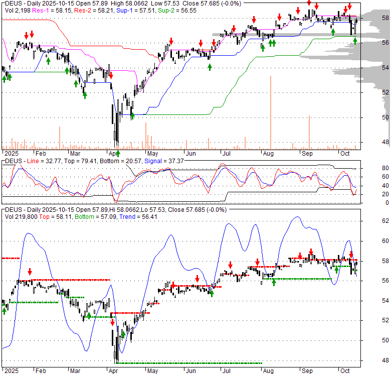 Price has closed above its short-term moving average. Short-term moving average is currently below mid-term; and above long-term moving average. From the relationship between price and moving averages: This stock is NEUTRAL in short-term; and NEUTRAL in mid-long term.[ DEUS ] has closed below upper band by 48.5%. Bollinger Bands are 10.6% wider than normal. The current width of the bands does not suggest anything about the future direction or movement of prices.