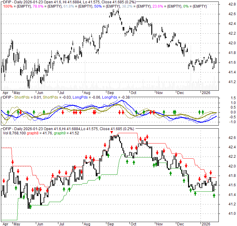 Price has closed above its short-term moving average. Short-term moving average is currently below mid-term; and below long-term moving average. From the relationship between price and moving averages: This stock is NEUTRAL in short-term; and BEARISH in mid-long term.[ DFIP ] has closed below upper band by 32.3%. Bollinger Bands are 45.1% narrower than normal. The narrow width of the bands suggests low volatility as compared to its normal range. The bands have been in this narrow range for 12 bars. This is a sign that the market may be about to initiate a new trend.
