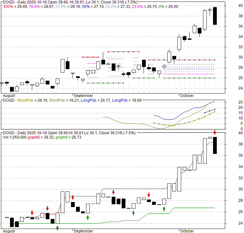 Price has closed below its short-term moving average. Short-term moving average is currently below mid-term; and below long-term moving average. From the relationship between price and moving averages: This stock is NEUTRAL in short-term; and NEUTRAL in mid-long term.[ DOGD ] has closed below upper band by 25.7%. Bollinger Bands are 0% narrower than normal.