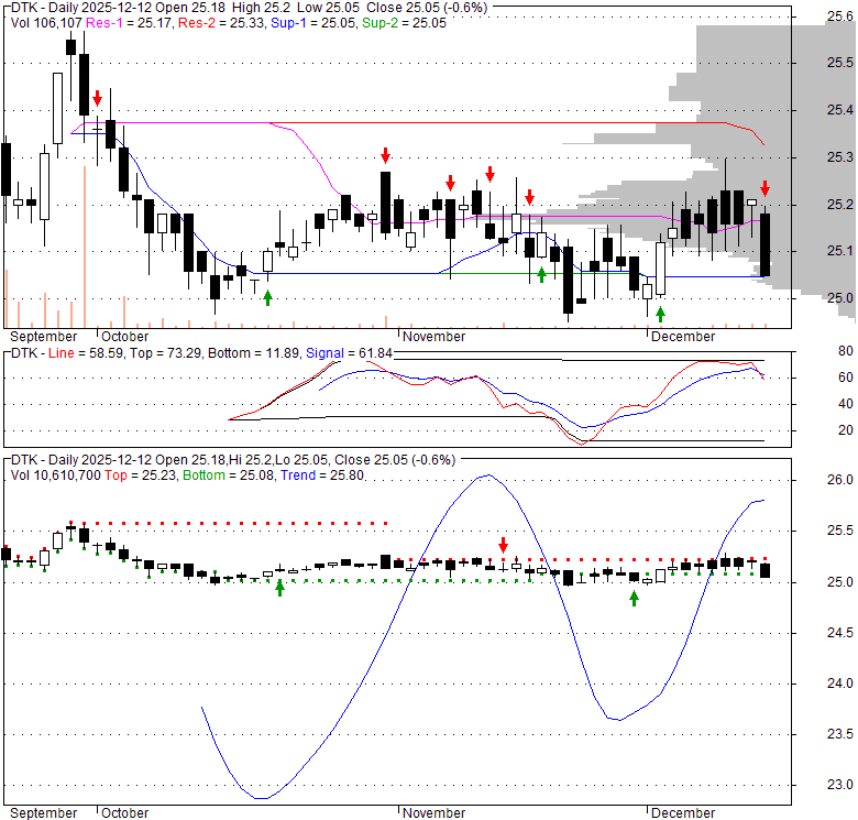 Price has closed below its short-term moving average. Short-term moving average is currently above mid-term; and below long-term moving average. From the relationship between price and moving averages: This stock is NEUTRAL in short-term; and NEUTRAL in mid-long term.[ DTK ] has closed above bottom band by 28.9%. Bollinger Bands are 0% narrower than normal.