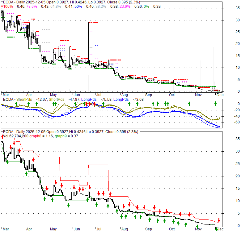 Price has closed below its short-term moving average. Short-term moving average is currently below mid-term; and below long-term moving average. From the relationship between price and moving averages: This stock is BEARISH in short-term; and BEARISH in mid-long term.[ ECDA ] has closed above bottom band by 22.3%. Bollinger Bands are 80.1% narrower than normal. The narrow width of the bands suggests low volatility as compared to its normal range. The bands have been in this narrow range for 8 bars. This is a sign that the market may be about to initiate a new trend.