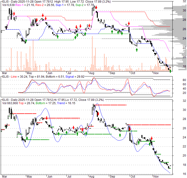Price has closed above its short-term moving average. Short-term moving average is currently below mid-term; and below long-term moving average. From the relationship between price and moving averages: This stock is NEUTRAL in short-term; and BEARISH in mid-long term.[ ELIS ] has closed above bottom band by 30.1%. Bollinger Bands are 7.7% narrower than normal. The current width of the bands does not suggest anything about the future direction or movement of prices.