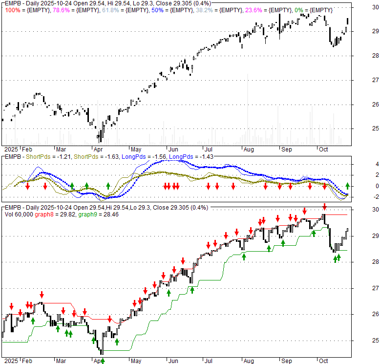 Price has closed above its short-term moving average. Short-term moving average is currently below mid-term; and above long-term moving average. From the relationship between price and moving averages: This stock is NEUTRAL in short-term; and NEUTRAL in mid-long term.[ EMPB ] has closed below upper band by 29.7%. Bollinger Bands are 86% wider than normal. The large width of the bands suggest high volatility as compared to its normal range. The bands have been in this wide range for 9 days. This is a sign that the current trend might continue.