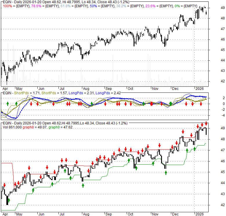 Price has closed below its short-term moving average. Short-term moving average is currently above mid-term; and above long-term moving average. From the relationship between price and moving averages: This stock is NEUTRAL in short-term; and BULLISH in mid-long term.[ EQIN ] has closed above bottom band by 46.8%. Bollinger Bands are 39.5% wider than normal. The current width of the bands does not suggest anything about the future direction or movement of prices.