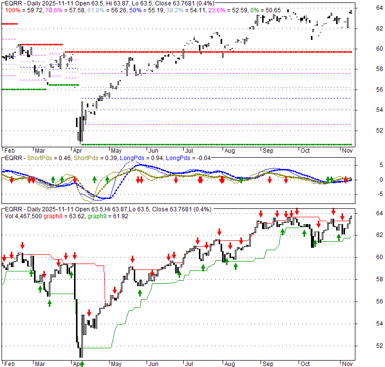 Price has closed above its short-term moving average. Short-term moving average is currently above mid-term; and above long-term moving average. From the relationship between price and moving averages: This stock is BULLISH in short-term; and BULLISH in mid-long term.[ EQRR ] has closed below upper band by 1.5%. Bollinger Bands are 22.4% narrower than normal. The current width of the bands does not suggest anything about the future direction or movement of prices.
