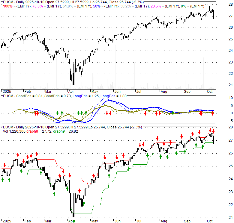 Price has closed below its short-term moving average. Short-term moving average is currently above mid-term; and above long-term moving average. From the relationship between price and moving averages: This stock is NEUTRAL in short-term; and BULLISH in mid-long term.[ EUSM ] has closed below the lower bollinger band by 2.5%. If price is in a downtrend band; this downward trend might continue. However a short term pullback inside the band is likely. Bollinger Bands are 10.1% narrower than normal. The current width of the bands does not suggest anything about the future direction or movement of prices.