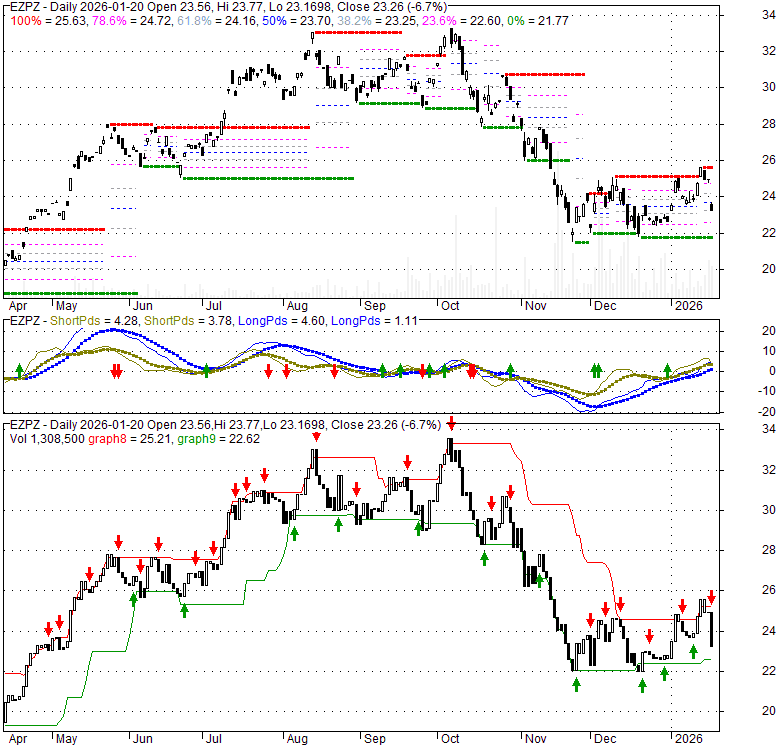Price has closed below its short-term moving average. Short-term moving average is currently above mid-term; and below long-term moving average. From the relationship between price and moving averages: This stock is NEUTRAL in short-term; and NEUTRAL in mid-long term.[ EZPZ ] has closed above bottom band by 30.0%. Bollinger Bands are 14.1% narrower than normal. The current width of the bands does not suggest anything about the future direction or movement of prices.