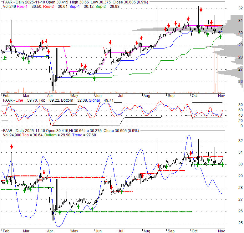 Price has closed above its short-term moving average. Short-term moving average is currently above mid-term; and above long-term moving average. From the relationship between price and moving averages: This stock is BULLISH in short-term; and BULLISH in mid-long term.[ FAAR ] has closed Bollinger Bands are 3.6% narrower than normal. The current width of the bands does not suggest anything about the future direction or movement of prices.