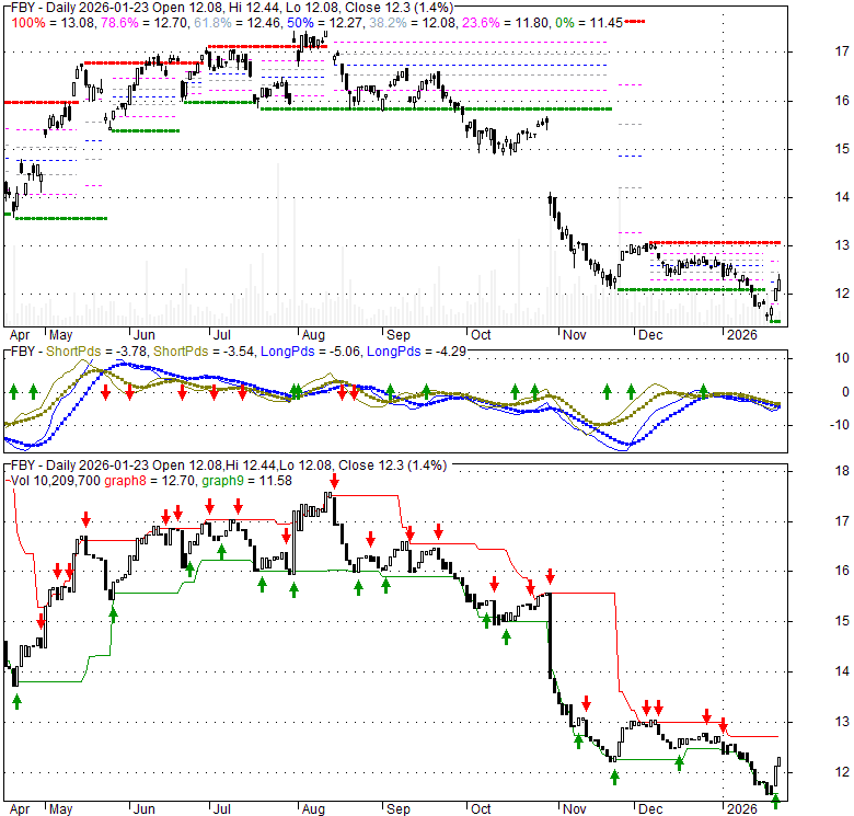 Price has closed above its short-term moving average. Short-term moving average is currently below mid-term; and below long-term moving average. From the relationship between price and moving averages: This stock is NEUTRAL in short-term; and BEARISH in mid-long term.[ FBY ] has closed below upper band by 36.1%. Bollinger Bands are 4.7% narrower than normal. The current width of the bands does not suggest anything about the future direction or movement of prices.