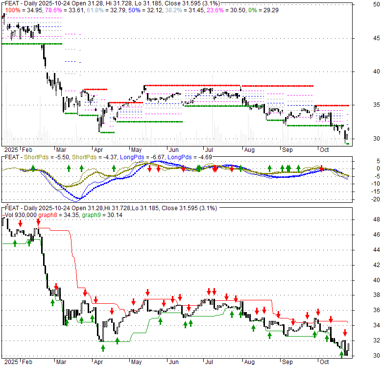 Price has closed above its short-term moving average. Short-term moving average is currently below mid-term; and below long-term moving average. From the relationship between price and moving averages: This stock is NEUTRAL in short-term; and BEARISH in mid-long term.[ FEAT ] has closed above bottom band by 40.5%. Bollinger Bands are 73.7% wider than normal. The large width of the bands suggest high volatility as compared to its normal range. The bands have been in this wide range for 9 days. This is a sign that the current trend might continue.