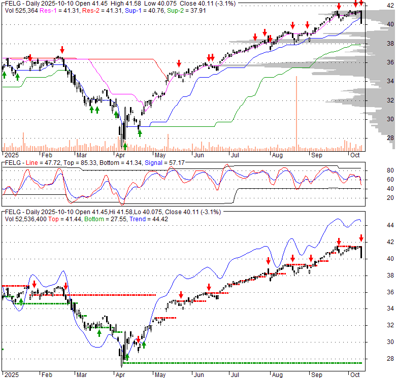 Price has closed below its short-term moving average. Short-term moving average is currently above mid-term; and above long-term moving average. From the relationship between price and moving averages: This stock is NEUTRAL in short-term; and BULLISH in mid-long term.[ FELG ] has closed below the lower bollinger band by 15.2%. Although price has broken the lower band and a downside breakout is possible; the most likely direction for [ FELG ] is to continue within current trading range. Bollinger Bands are 20.4% narrower than normal. The current width of the bands does not suggest anything about the future direction or movement of prices.