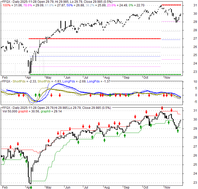 Price has closed above its short-term moving average. Short-term moving average is currently below mid-term; and above long-term moving average. From the relationship between price and moving averages: This stock is NEUTRAL in short-term; and NEUTRAL in mid-long term.[ FFGX ] has closed below upper band by 41.9%. Bollinger Bands are 70.5% wider than normal. The large width of the bands suggest high volatility as compared to its normal range. The bands have been in this wide range for 6 days. This is a sign that the current trend might continue.