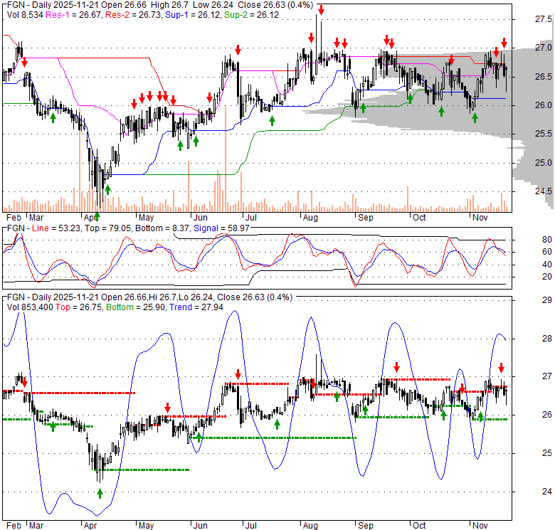 Price has closed above its short-term moving average. Short-term moving average is currently above mid-term; and above long-term moving average. From the relationship between price and moving averages: This stock is BULLISH in short-term; and NEUTRAL in mid-long term.[ FGN ] has closed below upper band by 37.6%. Bollinger Bands are 18.3% wider than normal. The current width of the bands does not suggest anything about the future direction or movement of prices.