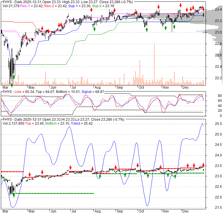 Price has closed below its short-term moving average. Short-term moving average is currently above mid-term; and above long-term moving average. From the relationship between price and moving averages: This stock is NEUTRAL in short-term; and BULLISH in mid-long term.[ FHYS ] has closed above bottom band by 12.7%. Bollinger Bands are 8.2% wider than normal. The current width of the bands does not suggest anything about the future direction or movement of prices.