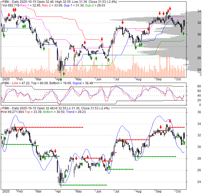 Price has closed above its short-term moving average. Short-term moving average is currently below mid-term; and above long-term moving average. From the relationship between price and moving averages: This stock is NEUTRAL in short-term; and NEUTRAL in mid-long term.[ FIBK ] has closed above bottom band by 49.8%. Bollinger Bands are 26.6% narrower than normal. The current width of the bands does not suggest anything about the future direction or movement of prices.
