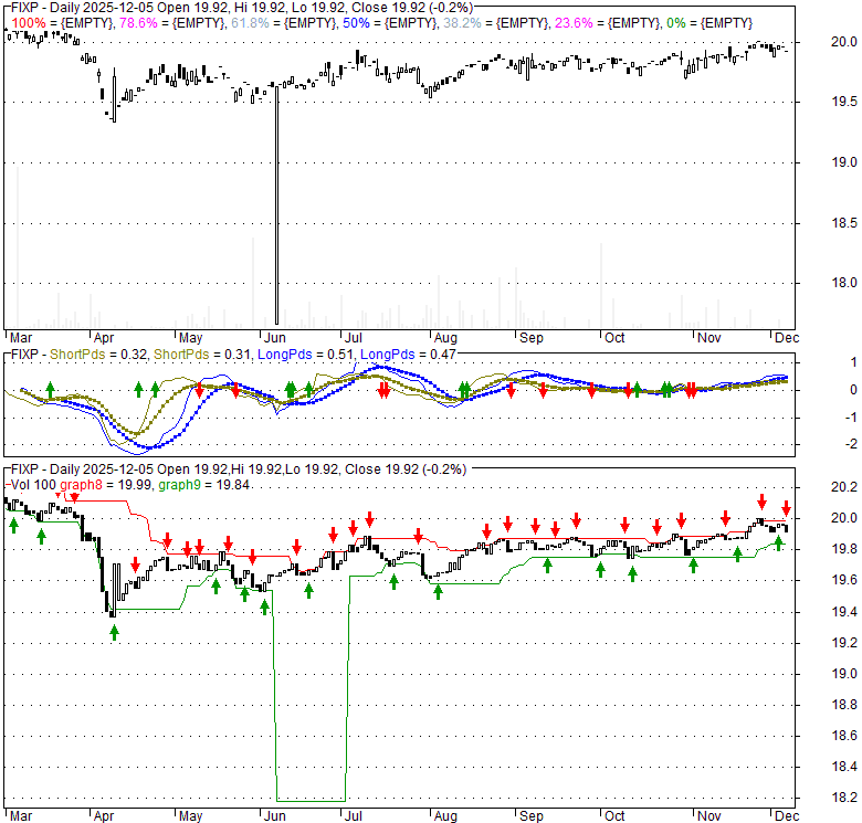 Price has closed below its short-term moving average. Short-term moving average is currently above mid-term; and above long-term moving average. From the relationship between price and moving averages: This stock is NEUTRAL in short-term; and BULLISH in mid-long term.[ FIXP ] has closed above bottom band by 42.2%. Bollinger Bands are 3.9% narrower than normal. The current width of the bands does not suggest anything about the future direction or movement of prices.