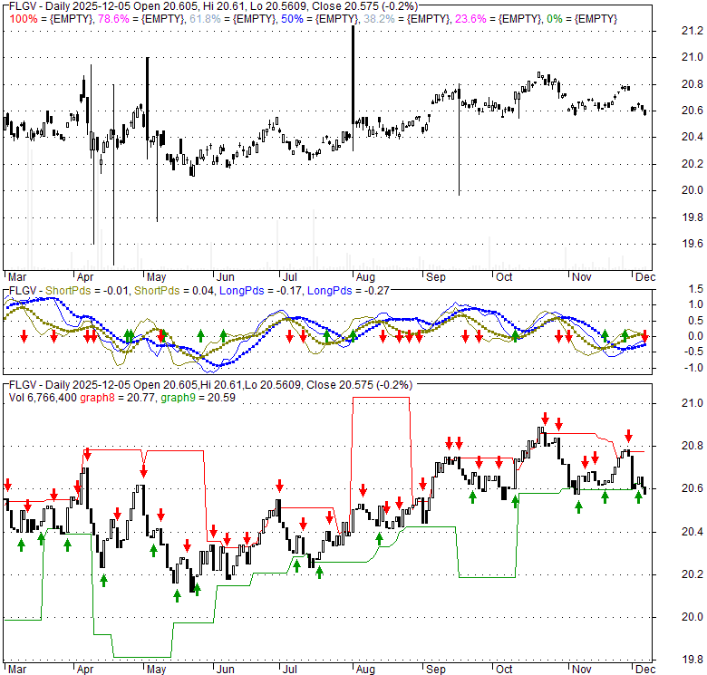 Price has closed above its short-term moving average. Short-term moving average is currently below mid-term; and above long-term moving average. From the relationship between price and moving averages: This stock is NEUTRAL in short-term; and NEUTRAL in mid-long term.[ FLGV ] has closed above bottom band by 28.1%. Bollinger Bands are 40.2% wider than normal. The large width of the bands suggest high volatility as compared to its normal range. The bands have been in this wide range for 0 days. This is a sign that the current trend might continue.