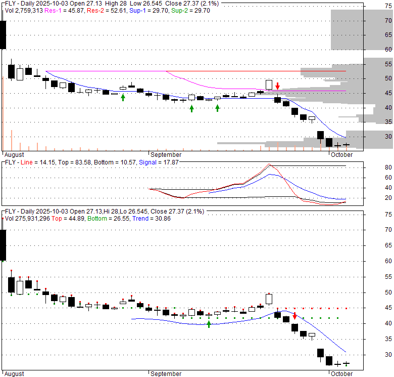 Price has closed below its short-term moving average. Short-term moving average is currently below mid-term; and below long-term moving average. From the relationship between price and moving averages: This stock is NEUTRAL in short-term; and NEUTRAL in mid-long term.[ FLY ] has closed above bottom band by 12.7%. Bollinger Bands are 0% narrower than normal.