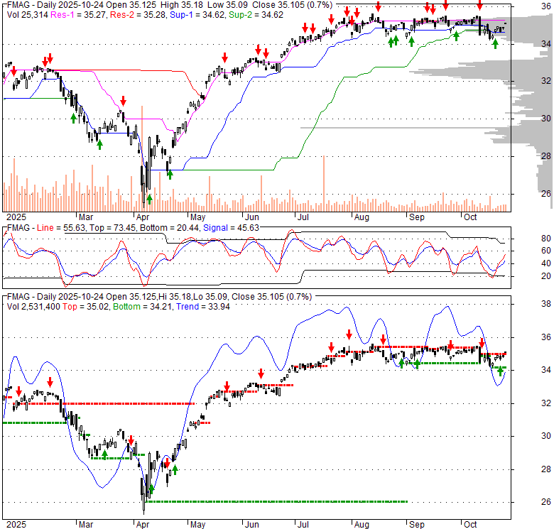Price has closed above its short-term moving average. Short-term moving average is currently below mid-term; and above long-term moving average. From the relationship between price and moving averages: This stock is NEUTRAL in short-term; and NEUTRAL in mid-long term.[ FMAG ] has closed below upper band by 32.5%. Bollinger Bands are 14.2% wider than normal. The current width of the bands does not suggest anything about the future direction or movement of prices.
