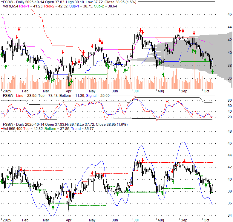Price has closed above its short-term moving average. Short-term moving average is currently below mid-term; and below long-term moving average. From the relationship between price and moving averages: This stock is NEUTRAL in short-term; and NEUTRAL in mid-long term.[ FSBW ] has closed above bottom band by 25.3%. Bollinger Bands are 4.9% narrower than normal. The current width of the bands does not suggest anything about the future direction or movement of prices.
