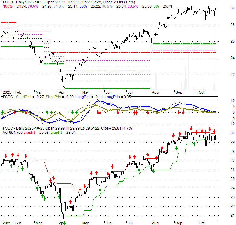 Price has closed above its short-term moving average. Short-term moving average is currently above mid-term; and above long-term moving average. From the relationship between price and moving averages: This stock is BULLISH in short-term; and BULLISH in mid-long term.[ FSCC ] has closed below upper band by 2.2%. Bollinger Bands are 5.5% narrower than normal. The current width of the bands does not suggest anything about the future direction or movement of prices.