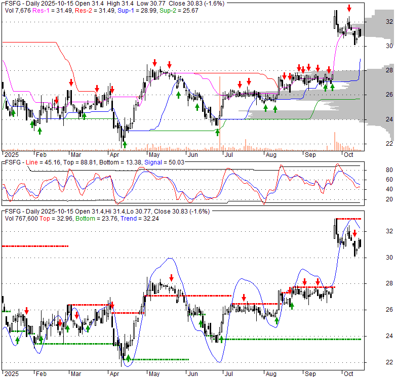 Price has closed above its short-term moving average. Short-term moving average is currently above mid-term; and above long-term moving average. From the relationship between price and moving averages: This stock is BULLISH in short-term; and BULLISH in mid-long term.[ FSFG ] has closed above bottom band by 45.8%. Bollinger Bands are 27.1% narrower than normal. The current width of the bands does not suggest anything about the future direction or movement of prices.