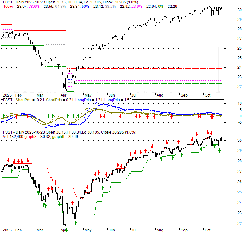Price has closed above its short-term moving average. Short-term moving average is currently above mid-term; and above long-term moving average. From the relationship between price and moving averages: This stock is BULLISH in short-term; and BULLISH in mid-long term.[ FSST ] has closed below upper band by 1.9%. Bollinger Bands are 14.5% wider than normal. The current width of the bands does not suggest anything about the future direction or movement of prices.